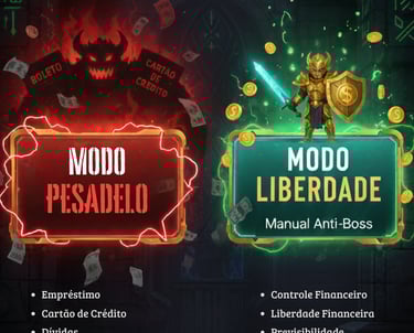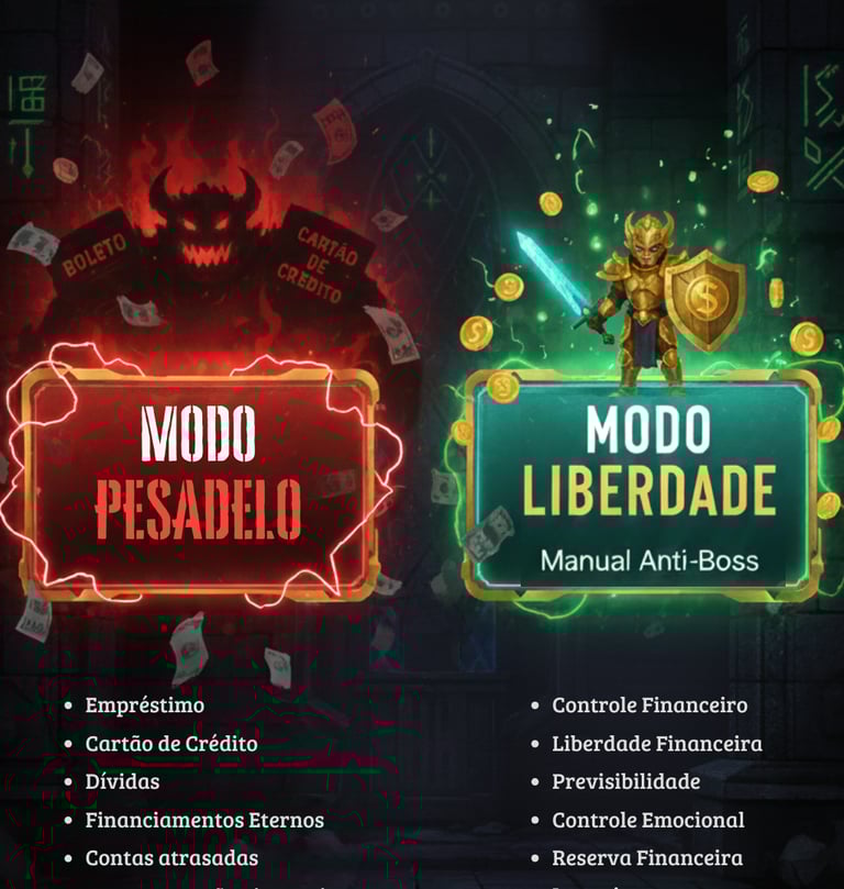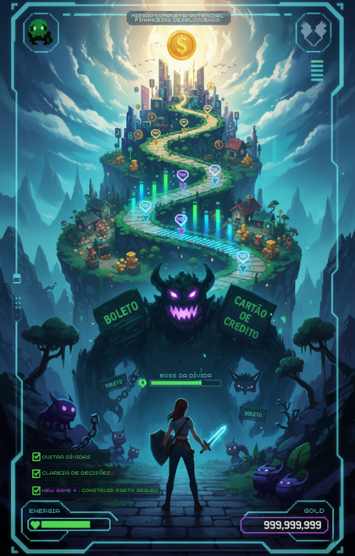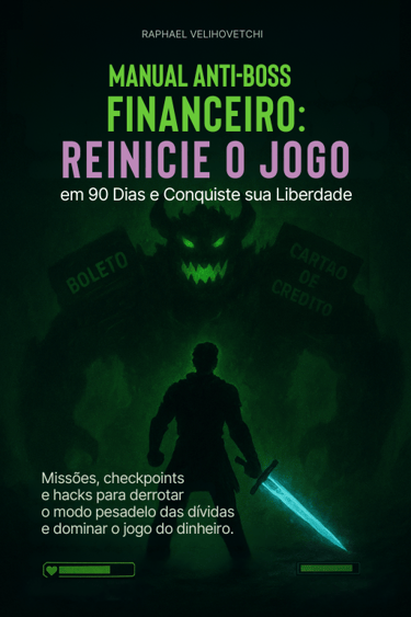 Você está preso no loop infinito dos boletos? O eBook prático para quem quer derrotar o “chefe final” das finanças pessoais: o caos e o medo de olhar a conta. Esse é um manual que vai te dar missões, checkpoints e hacks práticos para sair do vermelho e dominar o jogo do dinheiro.